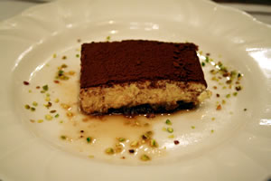 ![]() ティラミス しっとりとしたスポンジに軽めのチーズクリームがのっている。 |